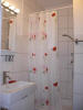 Bad mit Dusche, Waschbecken und WC, Fön